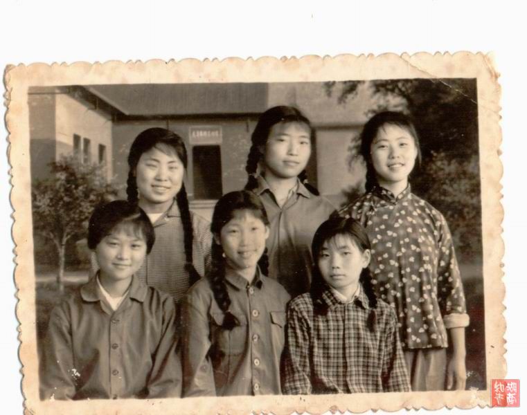前排中是玉莲,前左是我陪她去看人家的美玲,1969年春插后我们一起上街,摄于安乡县城唯一的照相馆