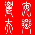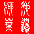 第一个,没边框,不太好看。第二个,似乎颜色的搭配太抢眼,而且隶书显得有点呆板。本来还试了下小篆字体的,“知”和“山”字不好看。似乎这个还不错。