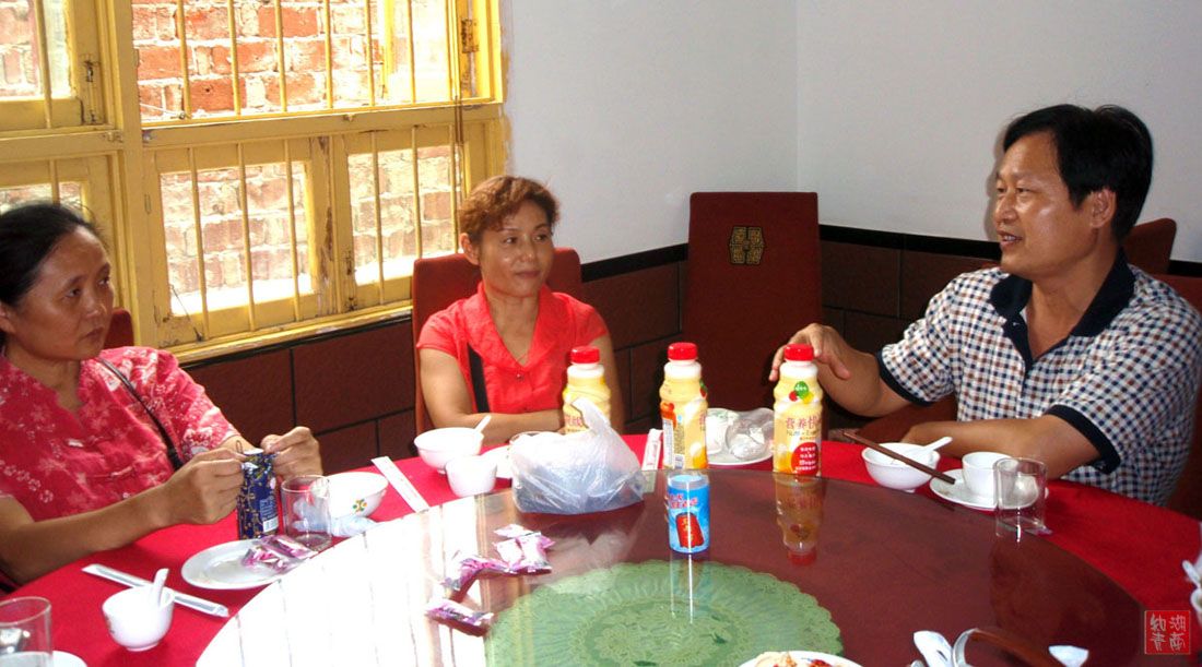 三人在展示他小时候的拿手戏------却腰子,不过只能往前面却了.