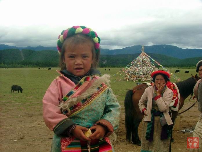 我也来出个题,下面这张我摄自香格里拉的照片里,藏族小女孩身后的那堆石头叫什么?