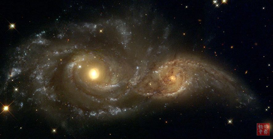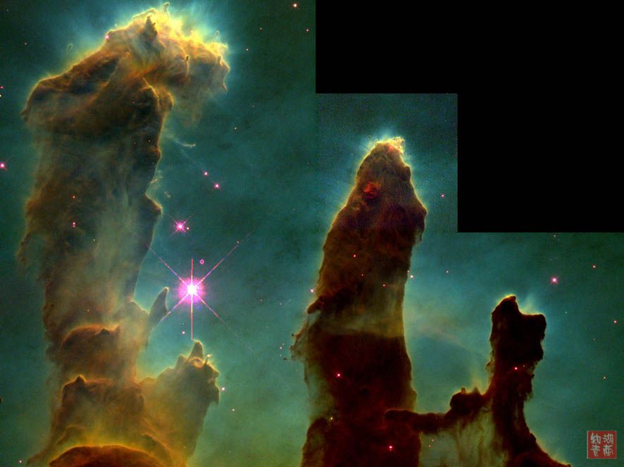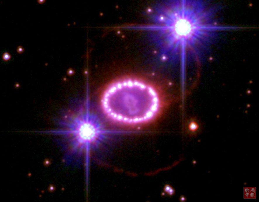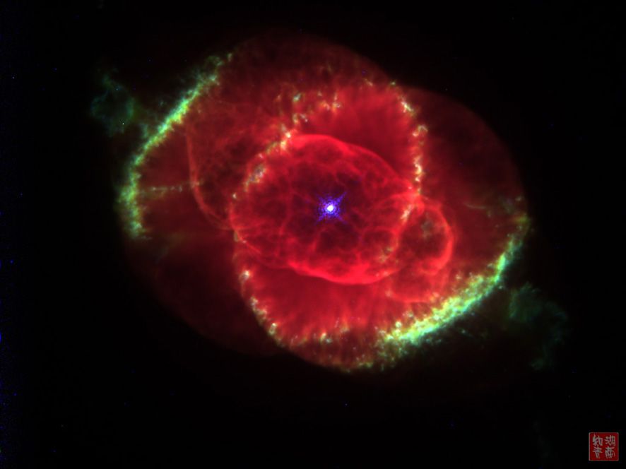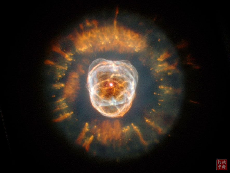 一颗古老的星星死亡后留下了一个重要的微小且炙热的白矮星和多层爆炸气体,爆炸的色彩非常艳丽(双子座)。(美国国家航空和宇宙航行局,哈勃)
