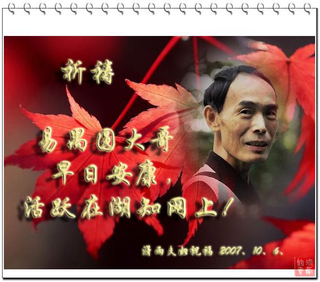 前几日因得不见易斑竹那充满生活情趣的帖子和热情宽容的跟帖,已存耽心,发了一个关注,大漠孤烟说是电脑坏了,方心安。今日上网,才知易偶圆斑竹身体有恙,心又提起。愿我们虽未谋面,早已闻言的朋友能闯过这一关,重续知青网友情!