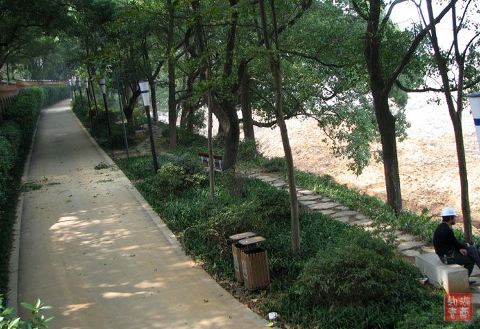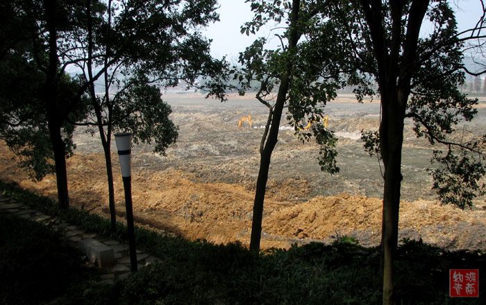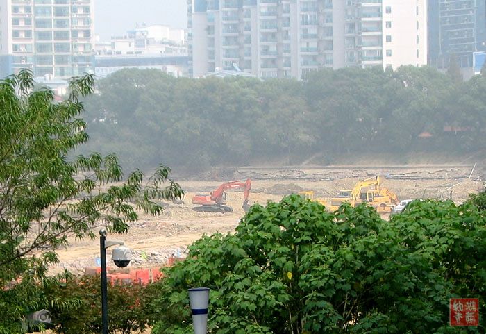 十一,想看看年嘉湖的隧道施工情况怎样了,但与其有一高墙所隔,于是搬来梯子架上,爬上墙来,还矮了一点,举起相机拍了几张。