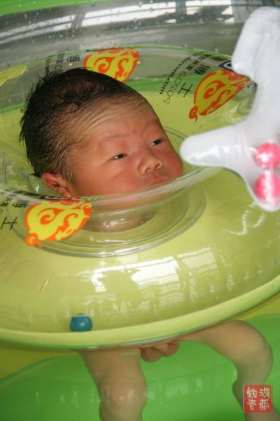 知青第三代真幸福,生下二天就享受游泳、按摩了。
