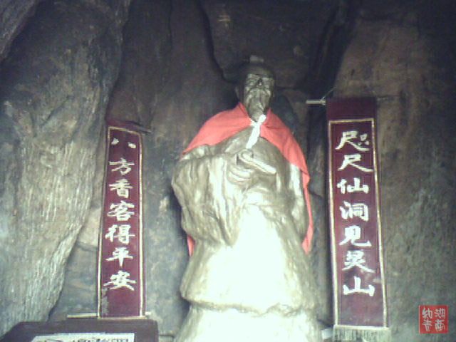 拜过孔子,我们向右下台阶,就来到了另一有名景点:朱陵洞。“朱陵洞内诗千首”也是衡阳八景诗中的一句。我的印象中,这个洞很小,最多容纳三个人,小时候来玩时也要猫着腰才能进,而且洞壁上也没看见什么诗。大概这一次重建,把洞扩大了,壁上写了诗了?但是,我们大失所望!洞没有丝毫扩大,诗仍然没有一首,但却多了一个菩萨和一个募捐箱,实在是大煞风景!“朱陵洞内诗千首”何其雅,却让铜臭玷污得令人只想远远逃开,公园的设计者是怎么想的?整个石鼓广场和公园的构思何等恢宏儒雅,怎会出现如此大败笔?如果衡阳的有关人士看到我这篇作,能否考虑将朱陵洞再改建一下,以符合诗意呢?
