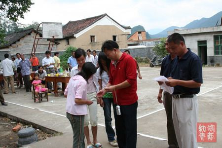 何书记宣布受捐贫困学生名单,3名中学生女孩代表接受长沙知青的捐赠,直接发放现金给贫困中学生