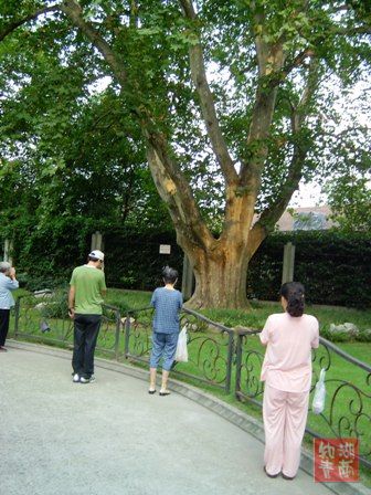 这是一株超过百年的法国梧桐树,一些老人把它供为神在祭拜。