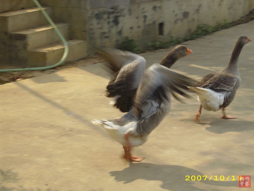 我跑步上前抢拍。鹅受惊疾走