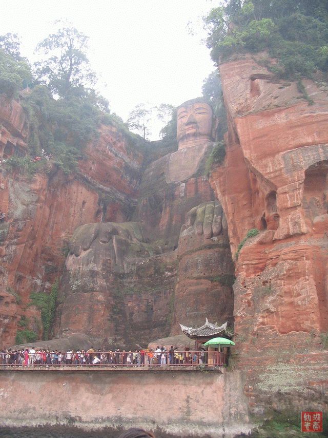 乐山大佛真是威武高大,人站在上面显得那么的渺小,那时的人们是如此的能工巧匠,雕刻出这般杰出之作,真是令人感叹佩服!