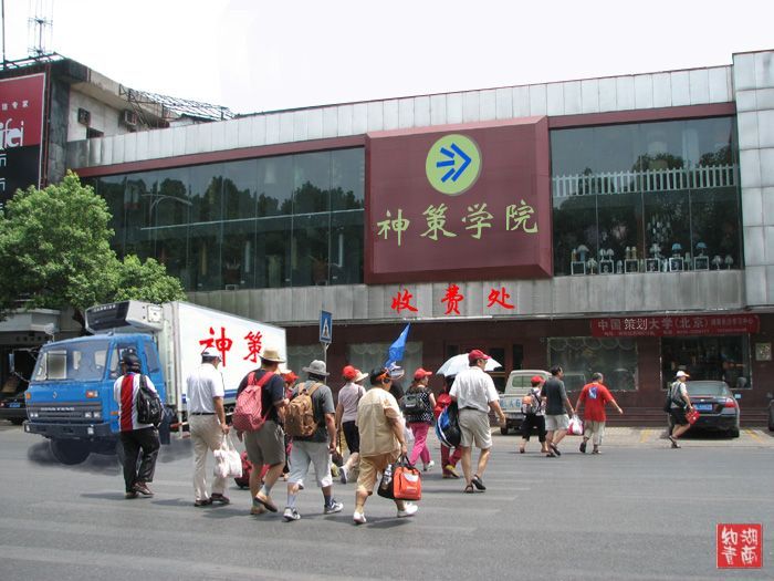 看见冒?采茶妹,山人教授带队进学院了。穿水红色裤的是乖乖。