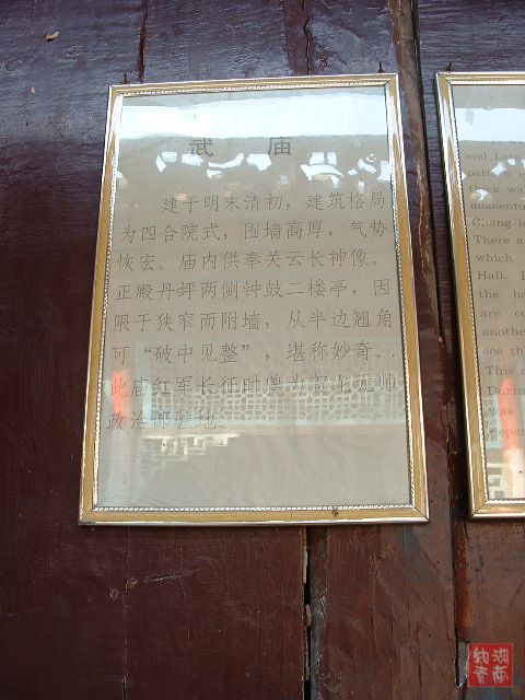 这是当年贺龙元帅长征时的政治部驻地-普光寺旁的高贞观内的武庙
