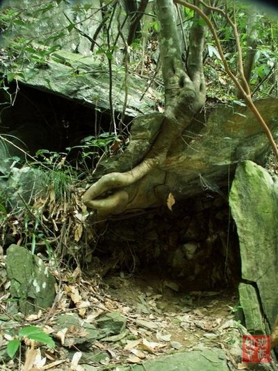 记不得是哪一年春天了.我去浏阳大围山玩,在半山腰一块巨石兀突出来,.巨石斜斜的,人们路过都要低一下头,或者弯一下腰.巨石下面是一个高四十公分,大约半个平方的小洞,小洞也是斜斜的,与地面成四十五度的夹角.