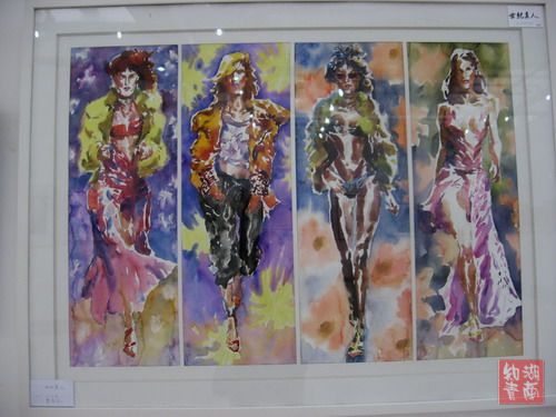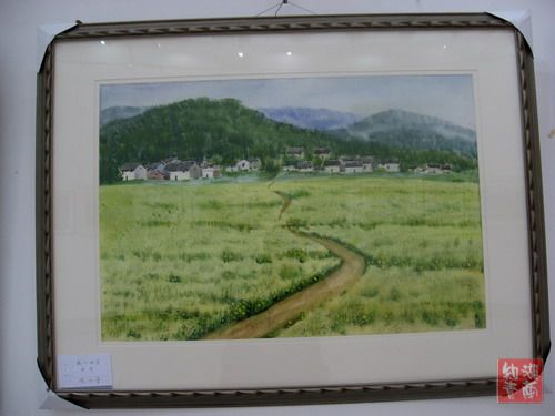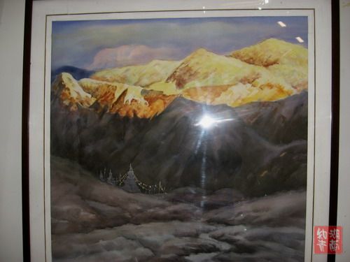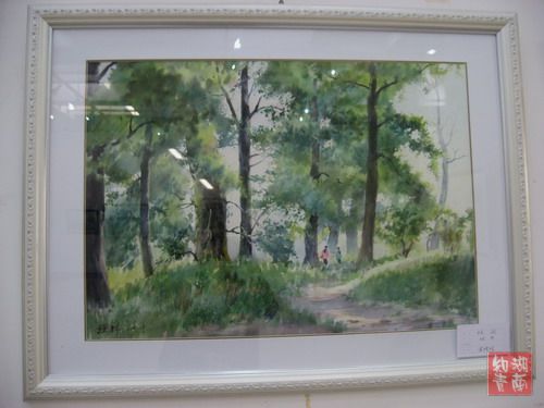 由于画作都用镜框装饰,所以,拍出的照片效果就这样了,有光点光斑,甚而人影.