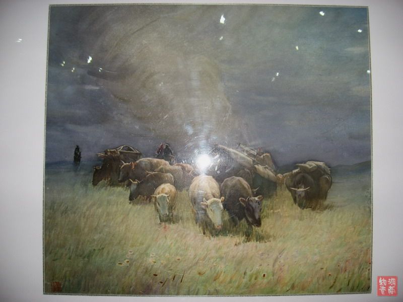 恰逢殷老在展室,我买的画册请他签名,顺便问到这幅画是不是碰到过这种旋风,然后回来凭记忆画的.他说不是,是创作的.我顿生感慨.十分喜欢这幅画.