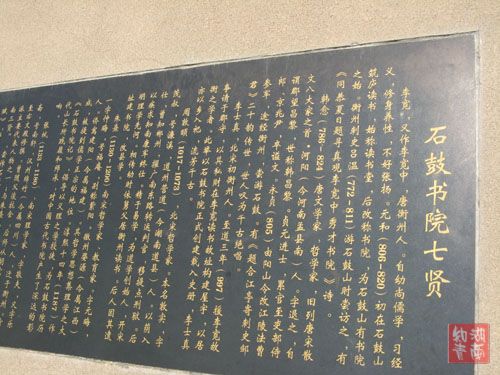 日前乡音姐返乡办事,相约一块去探访今年七月重修后的石鼓书院与其他古迹。石鼓广场的七人群雕曾被某网友游记说成竹林七贤像,当时只觉此七贤似与石鼓书院无涉,也未细究。今日细观基座上《石鼓书院七贤记》,才知那位网友之说大谬。也许他根本未看基座上碑文,想当然认作晋代著名的名士阮籍、嵇康等七人即“竹林七贤”。为正视听,录下石鼓书院七贤: