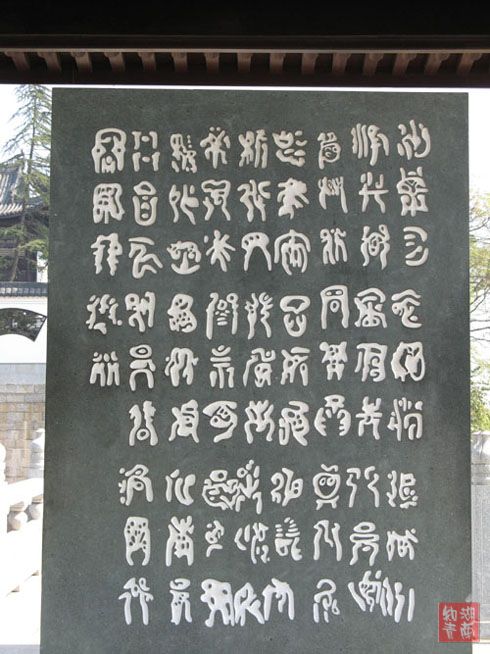 重修后的石鼓书院气势恢宏,新建大门前石桥上的禹碑亭,内有一块仿岣嵝峰大禹碑,那诡异的蝌蚪文据说学界泰斗郭沫若都自叹难辨。但毕竟有历代学者探讨,亭楣上有明杨慎的大禹碑释义。月前有秋水兄国庆返乡游重修石鼓书院文,只展示仿大禹碑文PP要大家猜字义,而亭楣杨慎释义秘而未宣,意为逗趣耶。