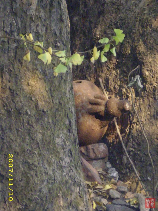 被卡在700多年的银杏树上锈迹斑斑的飞来钟
