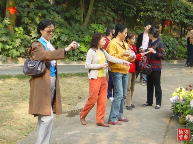 好美的菊花,二姐在和我们商量先拍哪一朵。