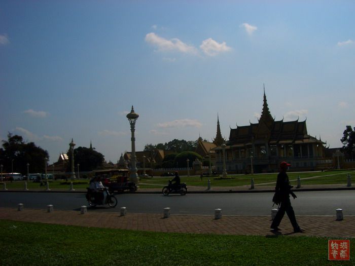 王宫也在河边。晚上河边的大道上车流如潮水。大道靠河的一侧,也是沿江风光带,主要是本地人在享受河边的凉风,有点人挤人的感觉。靠里的一边,全是GH、酒巴、西式餐馆和一两家大中餐馆,里里外外坐满了老外,小贩穿梭其中。广州的街头也没有这样热闹。