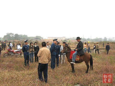 原来今上午在衡阳飞机坪举行中韩空军跳伞对抗赛。那被军警盘问的骑马者与许多赶来卖矿泉水、食品的生意人一样,是赶到现场给人骑马照相挣钱的。