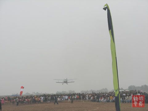 飞机在天上转了半天,等到10点多也未见跳下一朵伞,只飘下了一些彩带——听说云高只有400多米,云高800米才能跳伞,此赛暂停。传预计下周一(19号再试)。