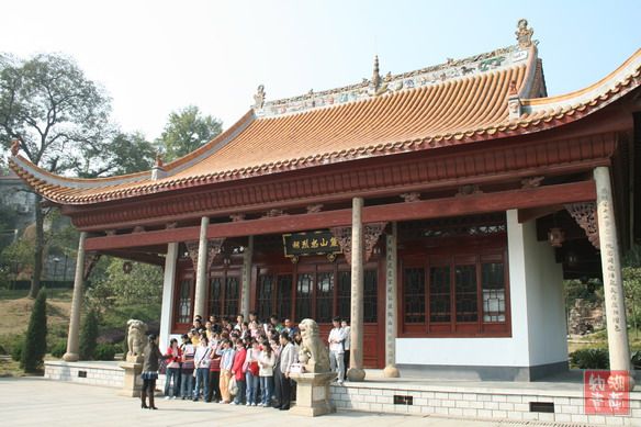 麓山忠烈寺, 师生歌兴隆. 雄鸡报晓迟, 早读有书生. 埋头求学问, 发愤慰忠魂.