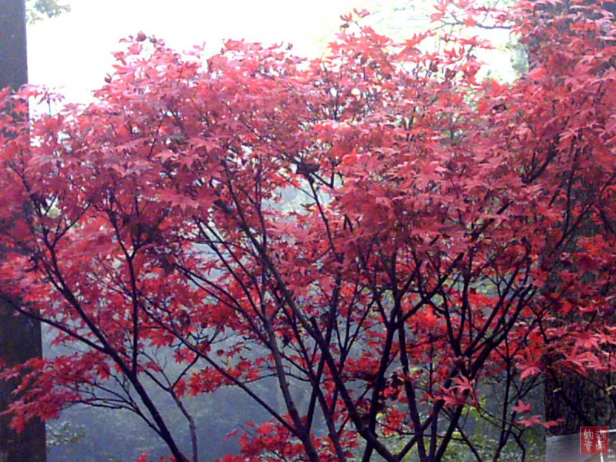 在湘江边的风光带上和岳麓山上,湖大的很多地方都有这样的红叶树.