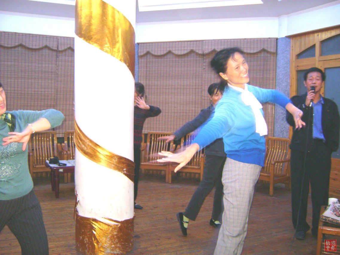 珊园长教小朋友跳舞,二姐的舞姿好优美,可惜被柱子档住了