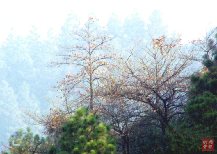 今天一早与晚安等几人去了岳麓后山的梅溪湖山冲一趟,发现那里现在真是幽静得很,真是闹市边的一处好休闲的地方。淡淡的晨雾飘洒在山谷之间,而山头上却是阳光明媚,色彩斑斓,尽管没时间,还是忍不住拍摄了二张,给朋友们观赏。