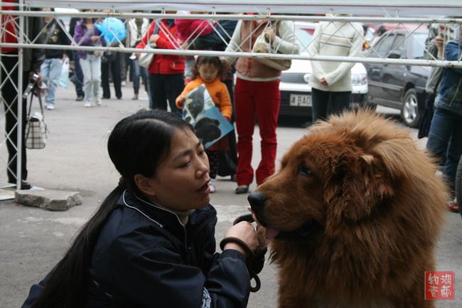 此犬相当凶悍,进去评比时差点咬到人。此女子正在安抚它,旁边有四、五个人分开人群。唯恐发怒伤人。