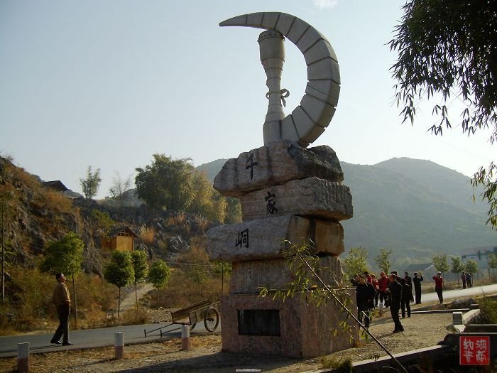 汽车接着前行,时不时有美景从车窗外掠过,大家不顾汽车的颠簸,抢着拍照,终于看到了千家峒的雕塑,这雕塑之所以是个牛角的造型,传说当时瑶族人为了躲避外来侵略,躲进这千家峒,把牛角分成12段,分散拿着,以此为凭,牛角拼合时即号令抵御外来侵略。