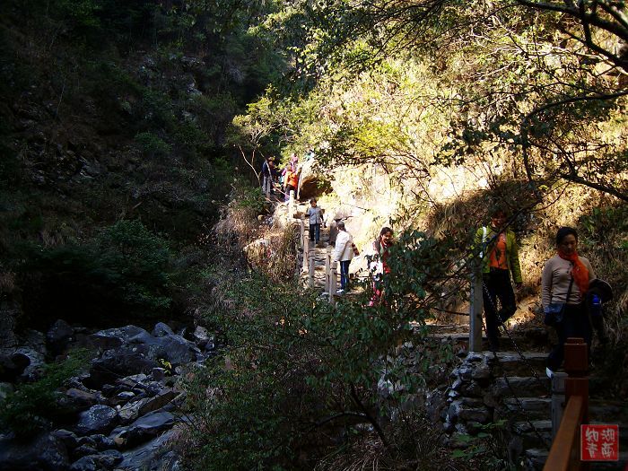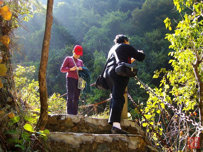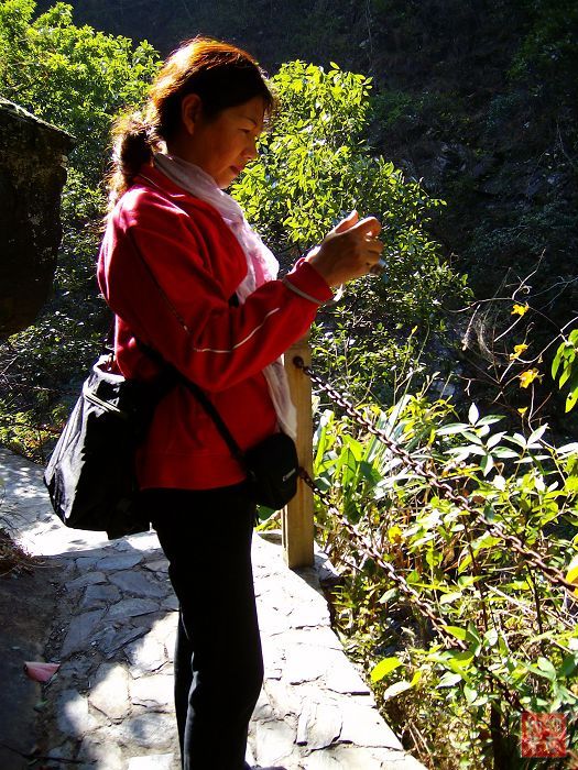 正式进千家峒大门时,每人要30元门票,经过交涉,说60岁以上的可买半票,70岁以上的可免票,于是大家说我们都是60岁以上的(虽说这中间有点水分),守门的当地人看着我们这一大群DDAJ,大概也缘于中国人习惯四舍五入吧,虽然口中也嘟哝着“哪里都有60岁”,却仍然让我们只买了半票。我们鱼贯而入。