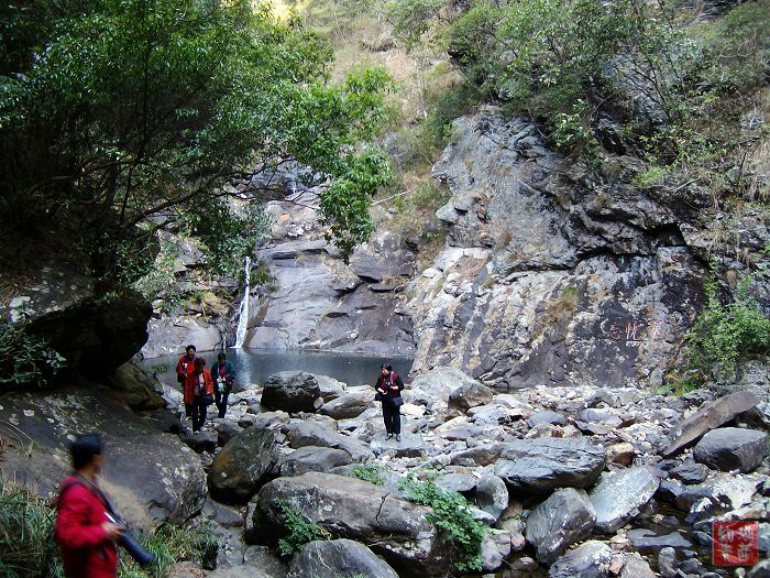 上午8点半我们准时乘车出发,原打算在去千家峒之前,再顺路看一个瀑布(名字我记不得了),但因为汽车开不进去,我们好像要走一个多小时才能到达那里;最主要还是因为久晴不雨,瀑布没水,所以我们只下车拍了几张照片。