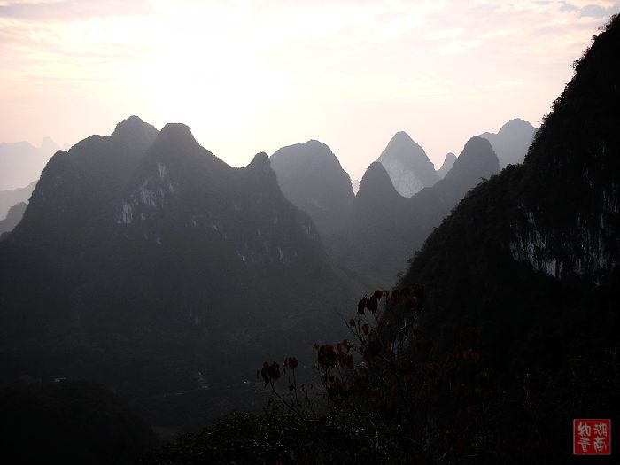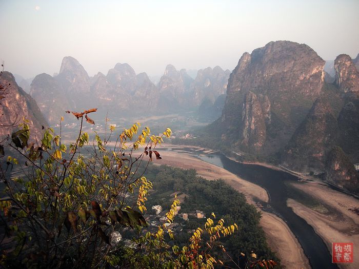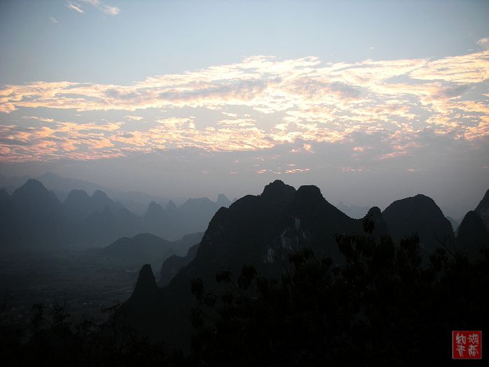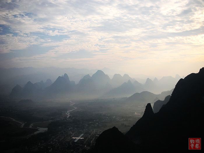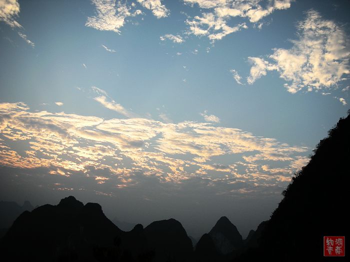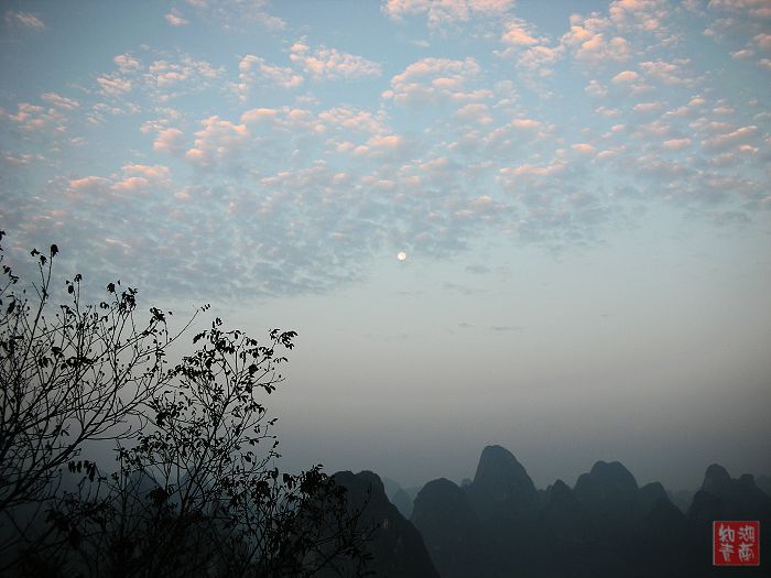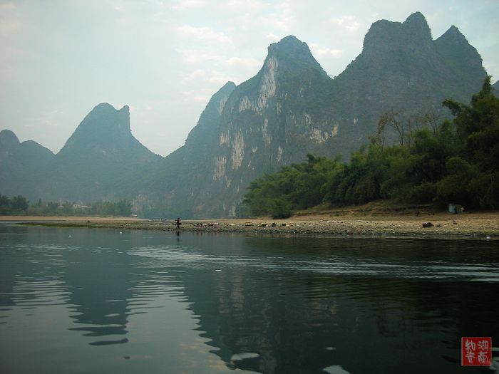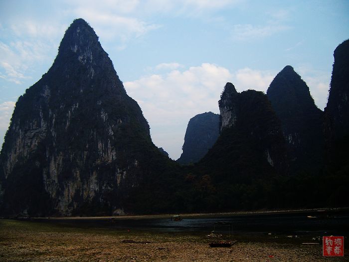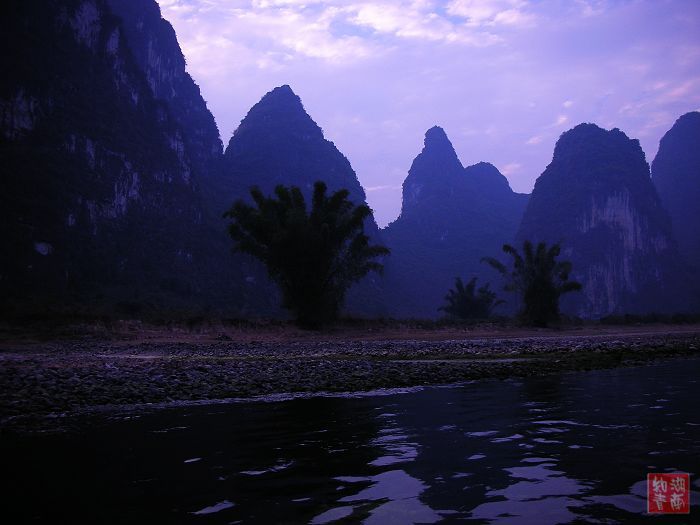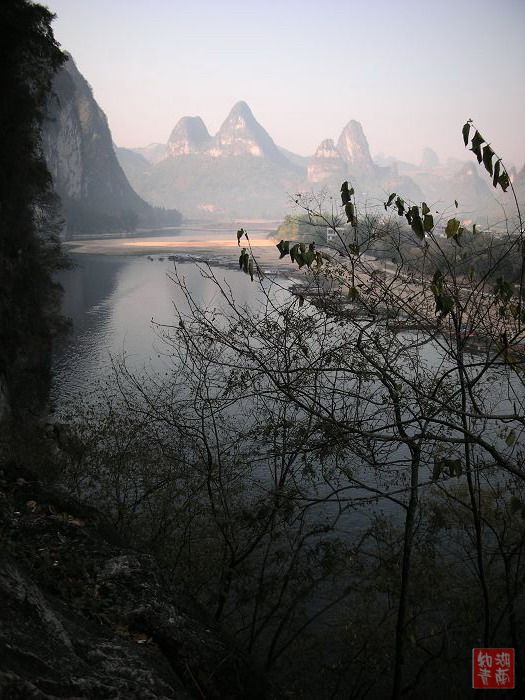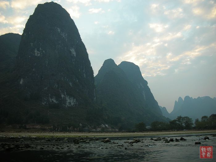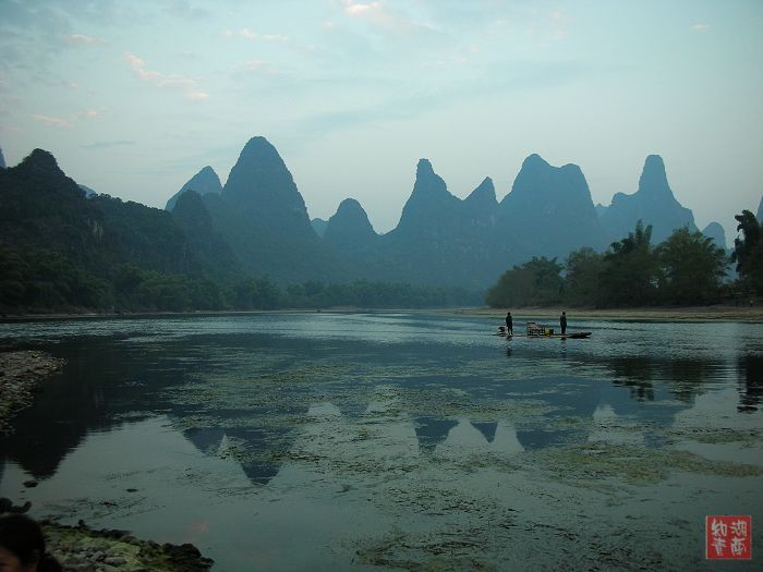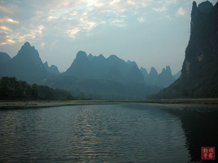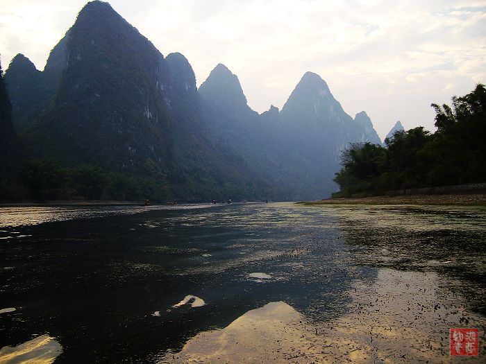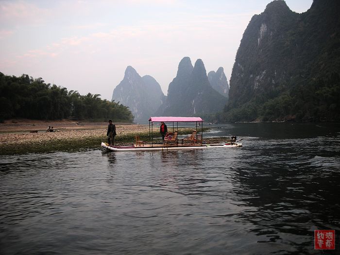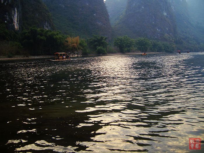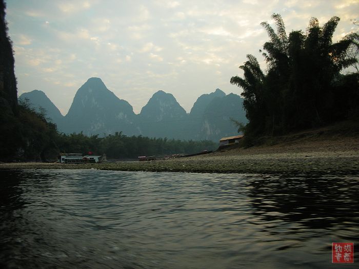 我们在江永之旅的第三天傍晚到达了广西兴坪,都说阳朔最美的风景在兴坪,所以我们连行李都没放下,就马不停蹄地直奔江边,对于初次到阳朔的我来说,真的不想走马观花了,实在太美了,可必须遵守纪律,于是只好随大部队登船游览,沿途处处美景如画,我也忙着用我那小巧的口袋机拍了一些照片。
