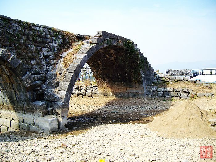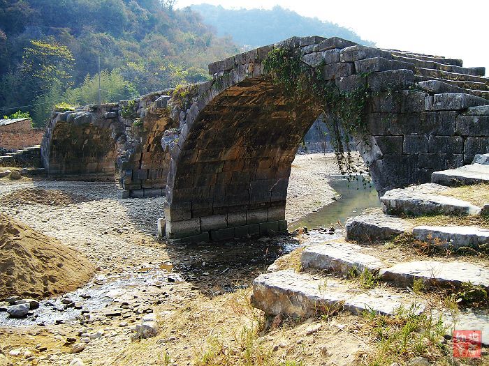 我们的汽车停在村口,首先映入眼帘的是古朴的文昌阁和布瀛桥,虽然穿桥而过的谢沐河已基本干涸,但这桥的圆拱顶和桥面是平行的,圆拱突出在桥外,这种造型我还是第一次见到。