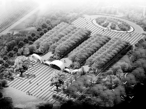 (橘子洲公园大门鸟瞰设计图。)