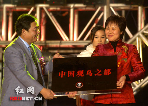 红网长沙12月2日讯(记者 明健飞 实习生 姜雄)您是一个鸟类爱好者吗?您对生态文明有足够的认识吗?昨晚在岳阳市开幕的第五届中国洞庭湖国际观鸟节,给了人们一个接近鸟类,认识湿地生态的一个契机。在开幕式上公布了“省鸟”评选结果,红嘴相思鸟被最终戴上了湖南“省鸟”桂冠。中国野生动物保护协会也宣布授予岳阳市“中国观鸟之都”称号。原全国政协副主席毛致用宣布本届观鸟节隆重开幕,国家林业局副局长印红、湖南省副省长杨泰波在开幕式上致辞。来自五大洲14个国家的国际专家和全国各地的近400名专业人士参加了的开幕式。精彩的文艺节目演出,使整个开幕式气氛热烈,渐入高潮。