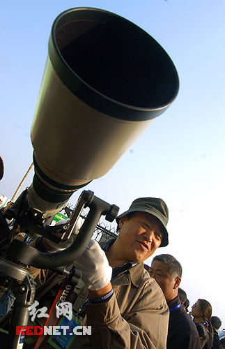 来自山东的观鸟队员扛着装上了大炮筒一样镜头的照相机。