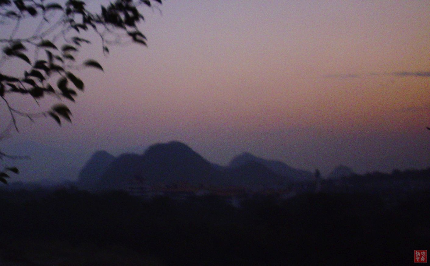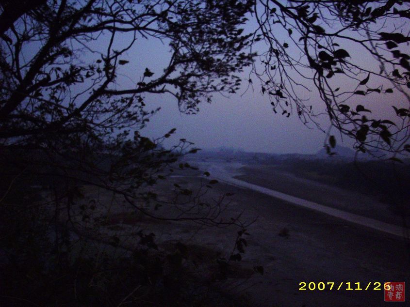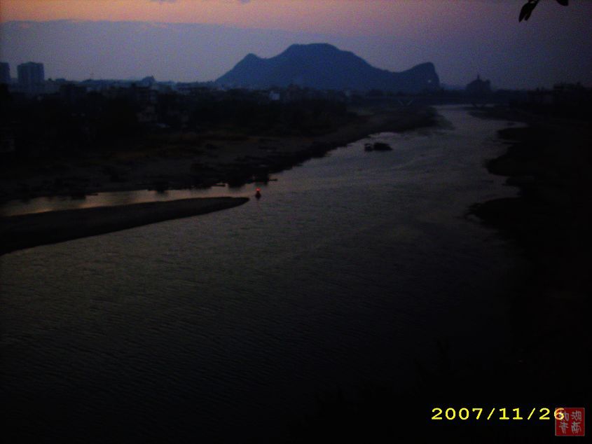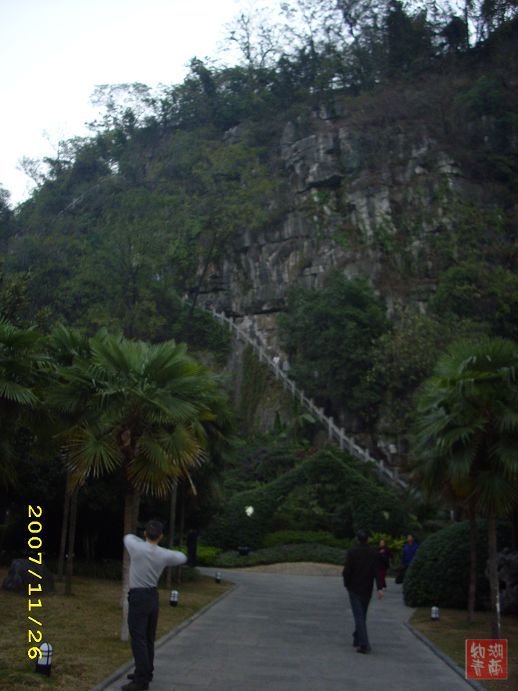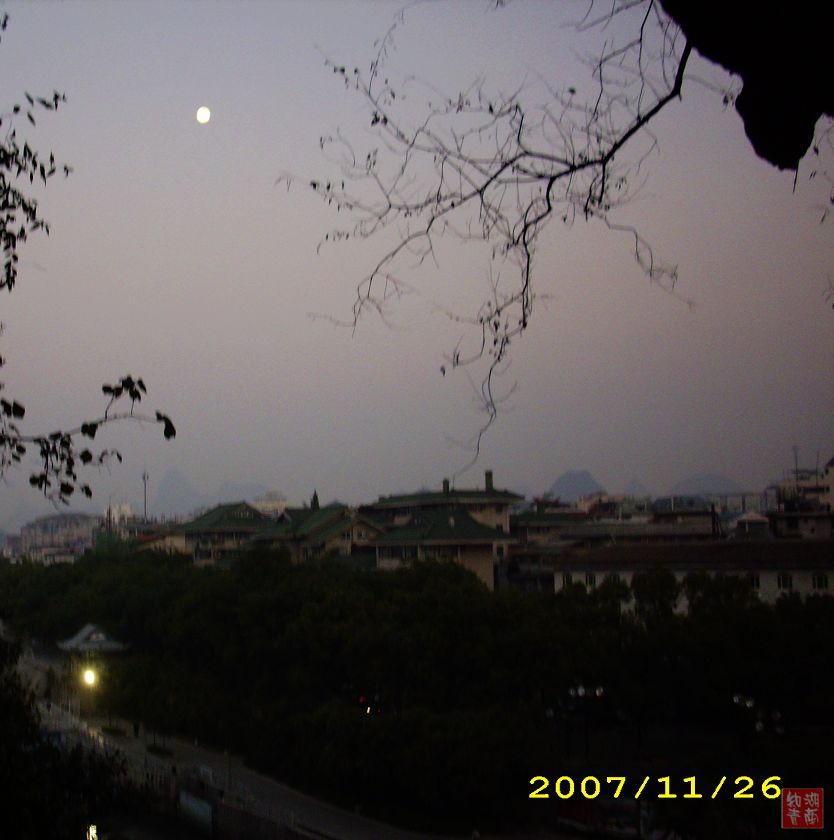 我由于没能赶上大部队,迟了几天才起程。2007年11月26日清晨4点,我们一行7人来到了桂林和桂林的冬冬会合了。天没有亮,我们和晨练的人一起进入了象山公园。太阳还没有出来,月亮还在天上。