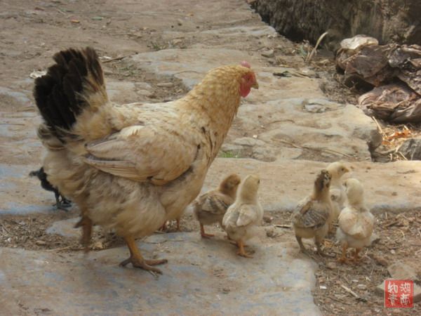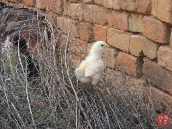 一只小鸡离群落单了,在独自啾啾地叫着找妈妈.