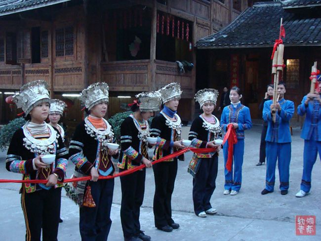 侗族美女、帅哥用他们的敬酒方式迎接远方的客人