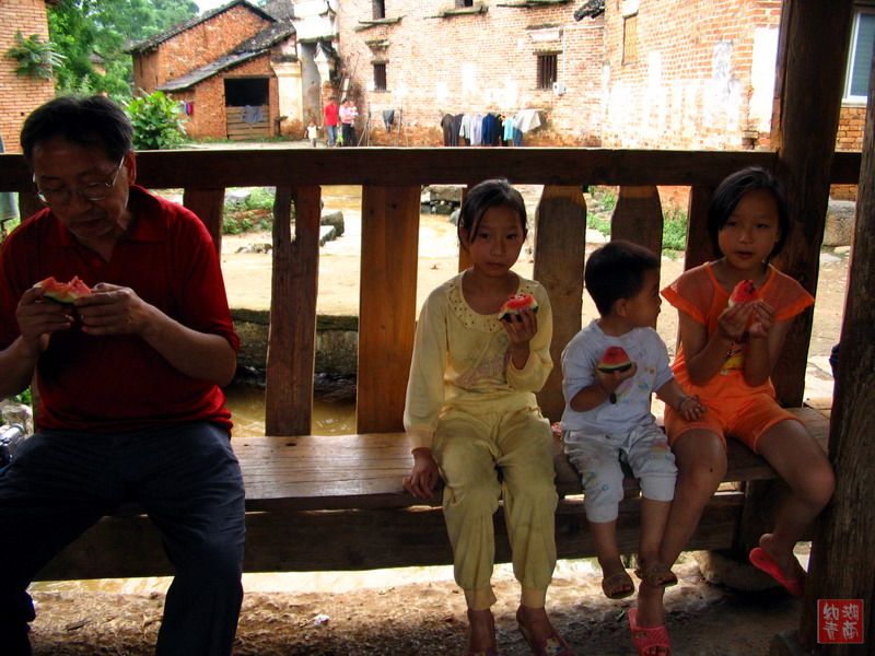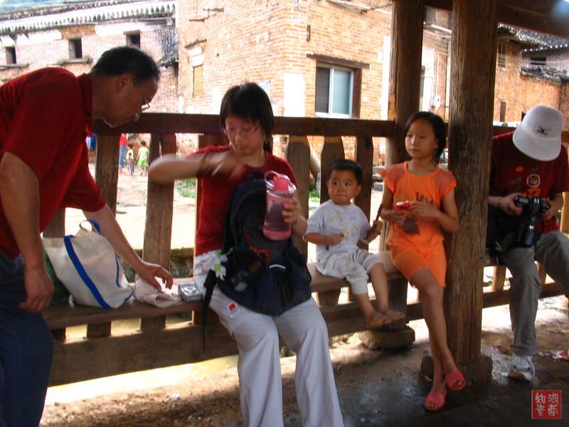在江永的黄村,我们看见了四座不同式样的廊亭,当时眼睛一亮,这可是第一次见到的呀,据说都有数百年历史,全部是木质结构,经过漫长的岁月磨练,廊亭仍然结实.有老人和小孩坐在上面休息,其作用就是当地村民休息和交往的场所,可以想像当地老乡挑着沉重的担子在此歇气的情景.廊亭的存在足以说明当地民风的朴实与和谐.