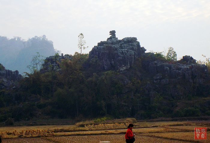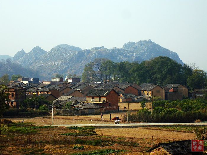 我们这次去江永,顺便也去了厚哥曾经下放的高家村,那里也是山青水秀,快进村时,就看见一座金鸡岭,虽没有广东坪石的金鸡岭险峻,但金鸡的造型颇有几分相似。