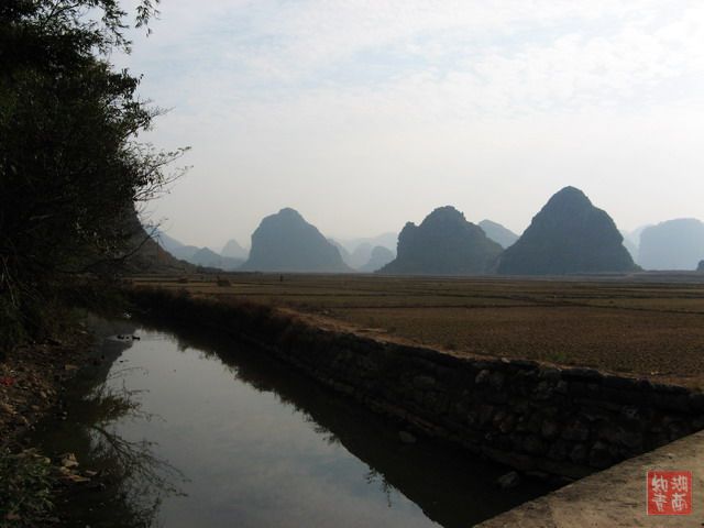 文昌阁后面的风景有桂林山水的特点。