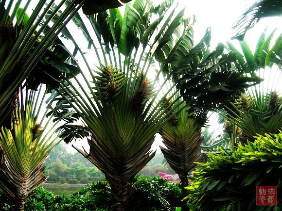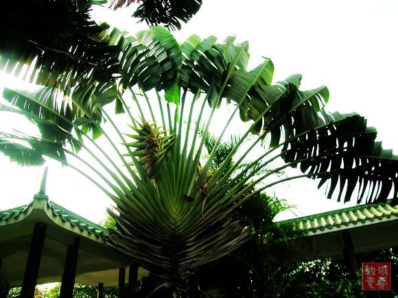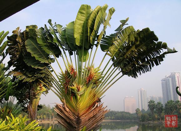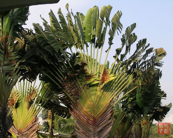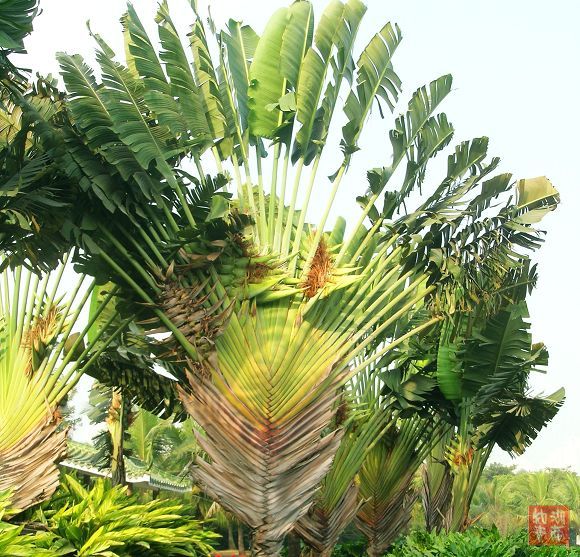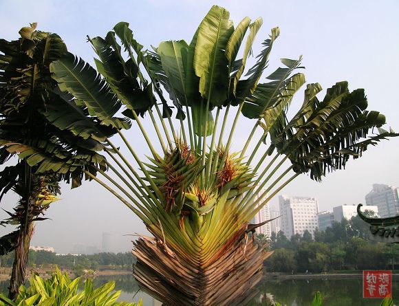 这植物原来生长在气候炎热的非洲、南美一带,长得高大、约8--10米高,叶柄粗壮,里面储存着许多水分.当旅行者在炎热干旱的地方行走,口渴了,找不到水喝时,就可以用旅人蕉叶柄里的水分来解渴.在关键时刻它可以是救命的生命之水哦。