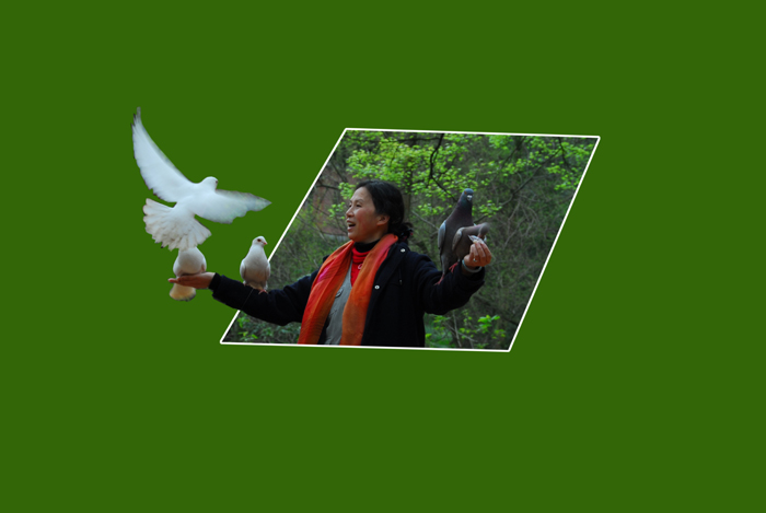 我是用 PHOTOSHOP 处理的,其实还有很多缺点,白边应还稍宽一点,鸽子没选好还有黑的......我想以会做得好一些.